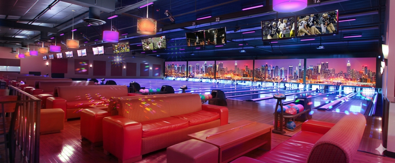 A completely upgraded bowling experience from floor to ceiling.